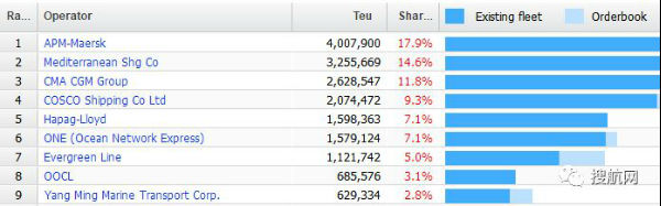 根据Alphaliner运力排名显示,中远海运与东方海外合并后,总运力将达到12.4%,超过法国达飞(CMA CGM)的11.8%, 一跃成为全球第三大船公司!