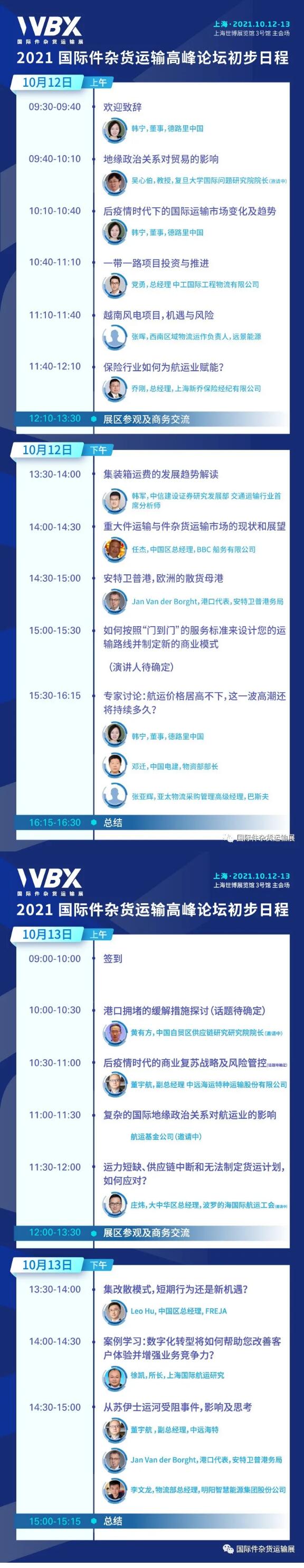 2021年国际件杂货运输高峰论坛将于10月12日-13日在中国上海世博展览馆举行。