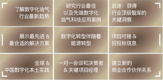 旨在深度探讨数字化转型痛点和转型之道,聚焦油田智慧云建设、5G+ 智慧油田、智慧勘探开发、智慧油气工厂、油气大数据和云计算、数字孪生和无人平台等最先端的科技和应用,第三届全球数字化油气行业决策者峰会暨展览将汇聚超过400 位油气上下游行业领袖,共同探讨后疫情时期油气企业数字化转型策略的实施以及应用实战,共话一个数字化油气的未来!