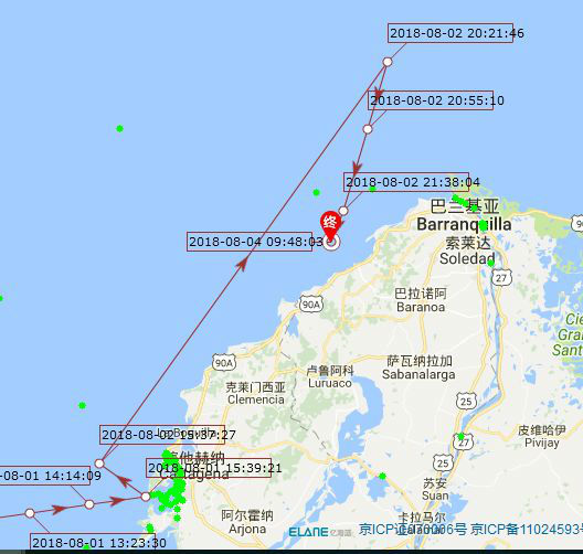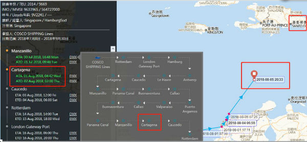 该船于8月1日从曼萨尼约到达卡塔赫纳港(CARTAGENA),原定于2日离港,由于此次事件,截至8月4日仍停靠在该港口,已造成船期延误,货代和外贸朋友需要关注一下。下一个停靠港是多米尼加的考赛多港(Caucedo),继而驶往鹿特丹。