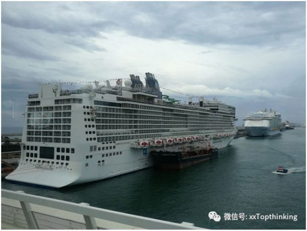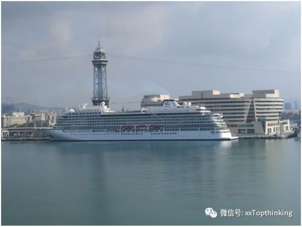 邮轮港北面有一个港池为客滚码头,也可以停靠吨位较小的邮轮。在下船的时候,看到维京星辰号(Viking Star)在那里停靠。其航线是巴塞罗那 >巴塞罗那 >马赛>圣特罗佩 >蒙特卡罗 >里窝那 >奇维塔韦基亚,也是七晚的航程。该艘船载客量仅有930人,算是更为高端的邮轮,船上有更为贴心的专属服务,有机会值得去体验。