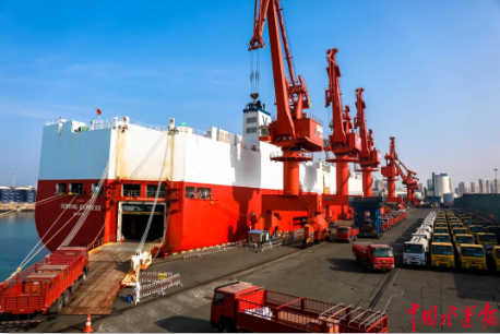 11月2日,以星航运“智利瑟冰”轮靠泊山东港口青岛港大港港区,标志着青岛港首条以星航运滚装航线――“红海航线”开通,将有力推动青岛港汽车滚装出口业务迈入融合发展、高速发展新时代。
