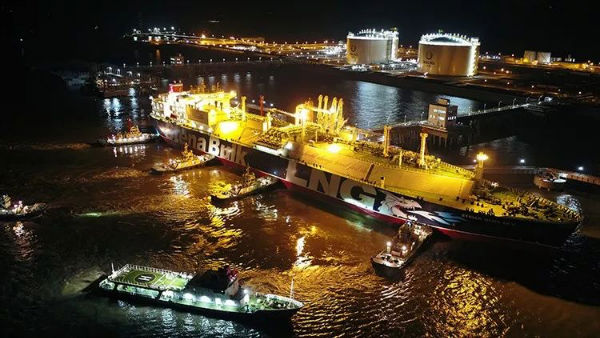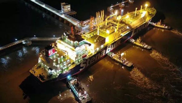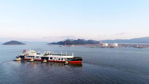第一艘接靠新奥舟山LNG接收站项目码头的LNG运输船为“Stena Blue Sky”号,满载14.5万方LNG从卡塔尔拉斯拉凡港口出发,经过16天航行抵达舟山站。该船所载LNG将主要销售到华东地区下游市场。