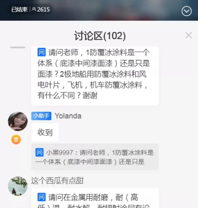 听众提问包括了拖曳速度和覆冰率如何确定、极地船体钢材涂层要求、焊缝的疲劳性能如何考核、压载舱结冰如何解决、摩擦腐蚀耦合实验中摩擦方式为哪种、极地实地实验材料的失效模式、极地大气环境最主要的腐蚀因素是什么、哪种涂料应对结冰工况最好、如何保持聚合物体系的微尺度结构在使用过程中的耐磨性......等问题,演讲嘉宾针对上述问题,做了细致解答。