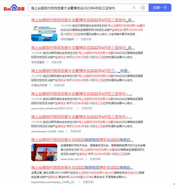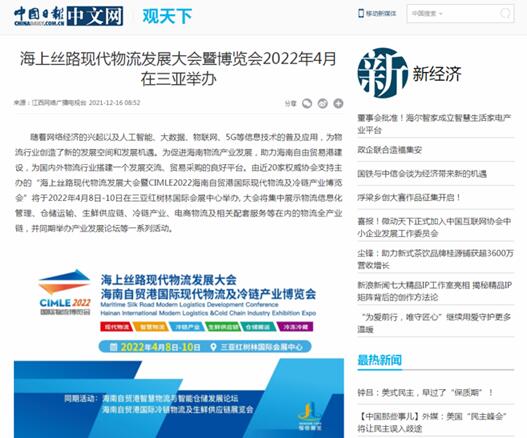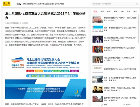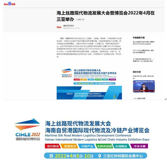 “海上丝路现代物流发展大会暨2022海南自贸港国际现代物流及冷链产业博览会”将于2022年4月8日-10日在三亚红树林国际会展中心隆重召开,大会同期将举办:2022海南国际冷链物流及生鲜供应链展览会、海上丝路现代物流发展大会、冷链物流及生鲜配送及发展高峰论坛、智慧物流与智能仓储发展论坛、新品推介、供需对接等一系列活动。大会还未开始就备受瞩目,更是吸引了众多权威媒体争相报道!
