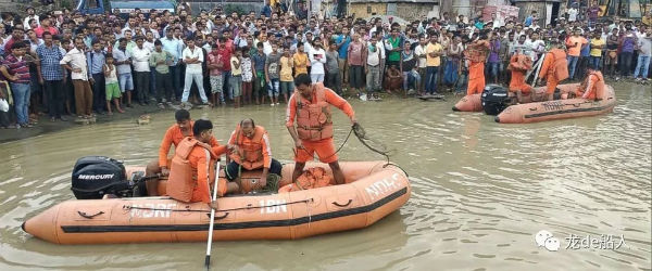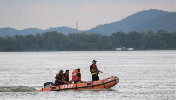 9月5日,在印度阿萨姆邦高哈蒂,救援人员准备在布拉马普特拉河开展搜救。 一艘机动船5日在印度阿萨姆邦卡姆鲁普县的布拉马普特拉河倾覆,造成3人死亡、11人失踪。