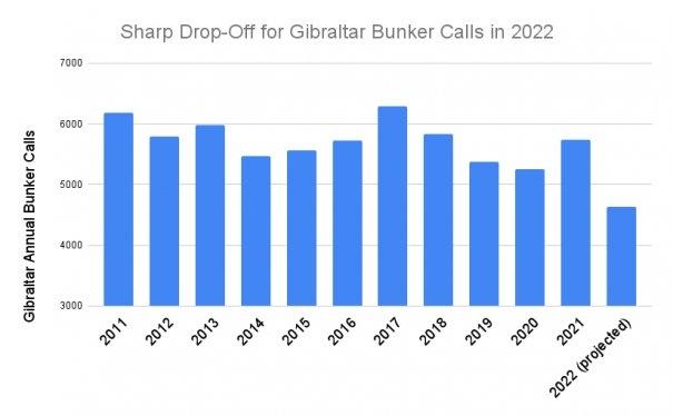 数据显示,2022年停靠直布罗陀加油的船舶数量将创下至少12年来新低。