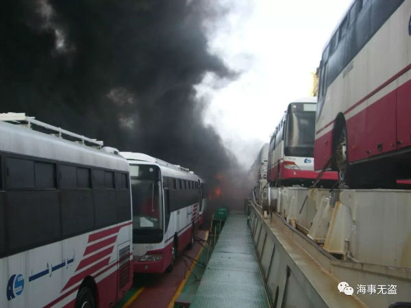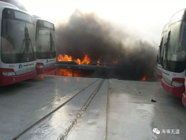 虽然已经排查出了火灾原因,并拆除了余下所有车辆的蓄电池。但是,紧绷的神经却没有放松下来。下午,值班驾驶员再次拉响了火灾警报!不过这一次却是虚惊一场,是值班员误把飘出车窗外的红色窗帘当成了火苗(一朝被蛇咬,十年怕草绳啊)。两次火情,护航队员和船员一起英勇、正确、及时的采取了扑救,阻止了火情的蔓延,保证了船舶和人员的生命财产安全。事后,我们的护航队员也得到了相关船公司的表扬和高度肯定。