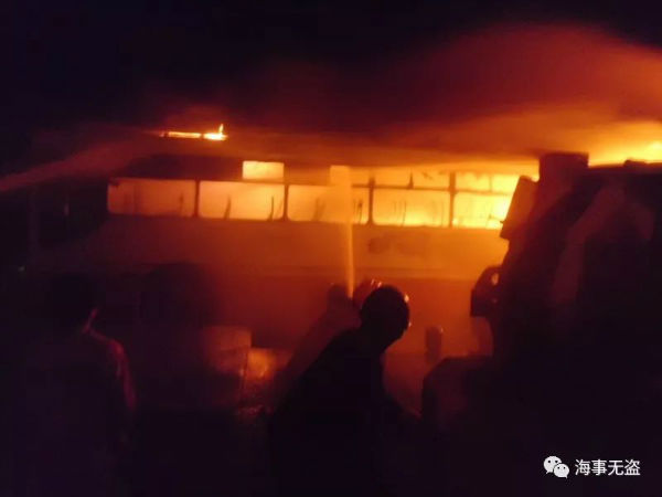 在华信中安的护航的任务中,曾经也遭遇过惊心动魄的船舶火灾事件。
