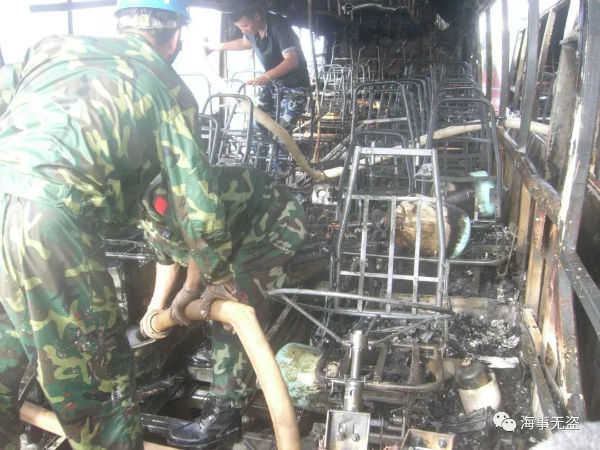一定要找出原因,否则还有第三次、第四次火灾~!灭火后,护航队员和大副一起冒着风浪打着手电挨个的排查火灾原因。
