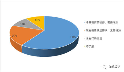 根据调查结果显示,60%的企业认为冷藏箱海运市场增长前景较好,冷藏箱市场保有量需要增加;20%的企业认为现有冷藏箱数据可以满足需求,无需购进新箱子;10%的企业认为冷藏箱新技术成本太高,目前没有订购计划;另外,10%的企业则表示没有关注到这项新技术。整体上看,集装箱运输企业对集装箱冷藏箱市场情况普遍看好,多数企业表示将增加冷藏集装箱的保有量,但仍有少部分的企业由于冷藏集装箱成本问题,短期内不会订购。