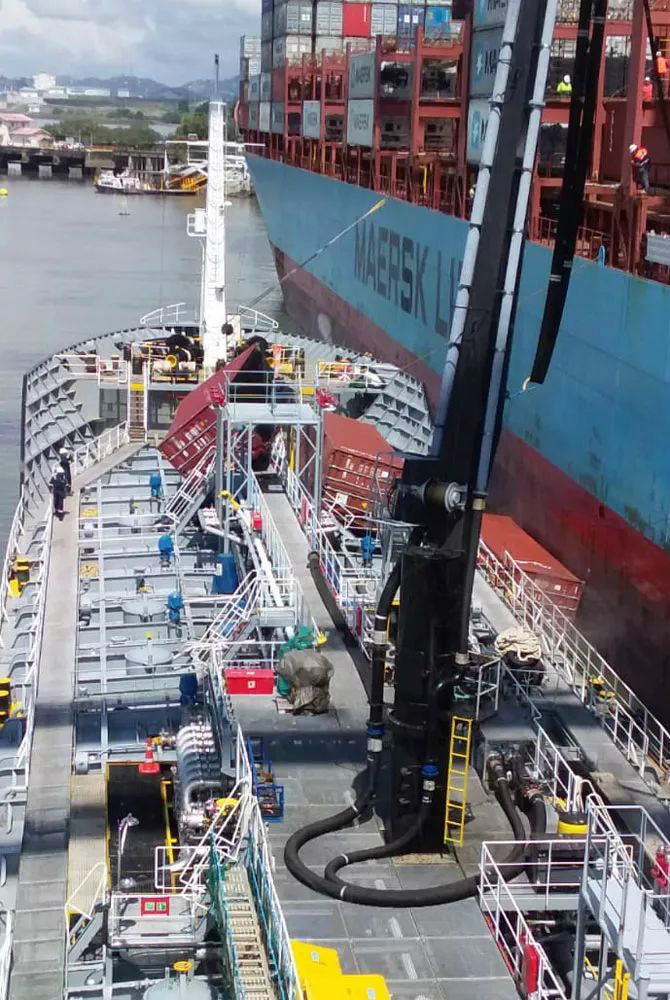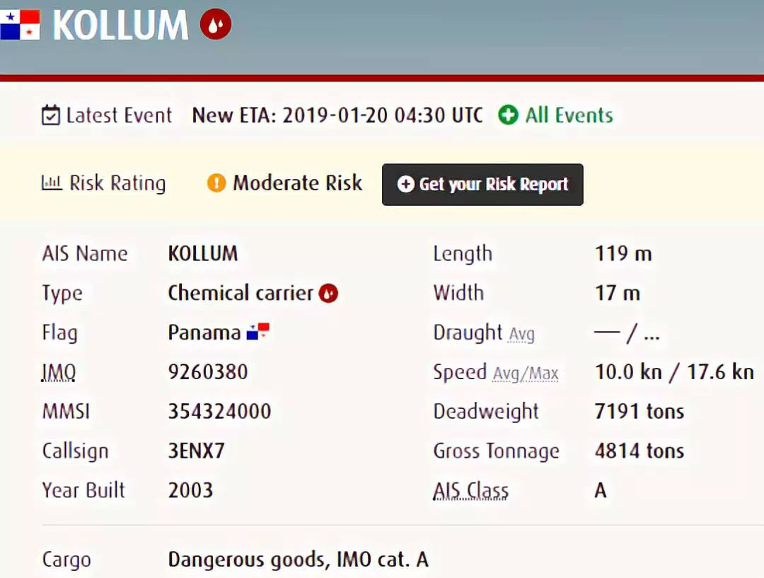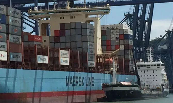 据国外媒体报道,当地时间11月6日,从墨西哥的拉萨罗卡德纳斯港到达巴拿马城并停靠在港口的“CHARLOTTE MAERSK”号集装箱船(9612 TEU)有三个集装箱从船上坠落,当时“KOLLUM”号油轮停泊在该箱船附近,其中两个货柜坠落在“KOLLUM”号油轮上,一个货柜掉进了水中。“KOLLUM”号油轮受到一定的损坏,但幸运的是,货柜碰撞并没有引起火灾。