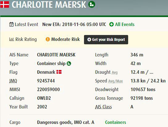 ▲“CHARLOTTE MAERSK”轮船舶信息