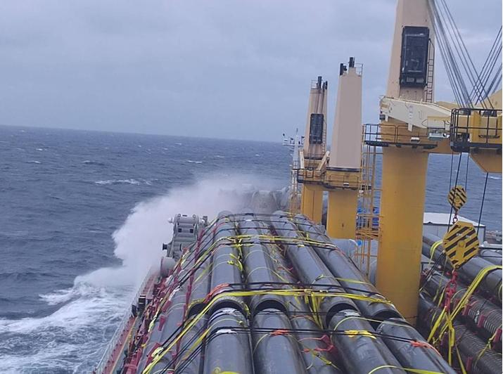 WIFFA散杂货运输联盟成员香港新丝路船务有限公司自有轮SEA TRAIN,于近日顺利完成在太仓装载5000余吨到美湾的超长超重钢板桩货物,单根长度达66米,直径1.528米,单根重量达155吨,配载位置NO.5+NO.4+NO.3(后半)舱盖,克令吊两侧各堆叠4层,堆高6米。船舶配载和绑扎难度远高于普通件杂货。