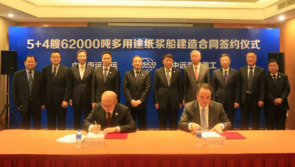 此前,2017年9月,双方签订的2+1艘62000吨多用途纸浆船建造合同,开启了打造专业纸浆船队的步伐。