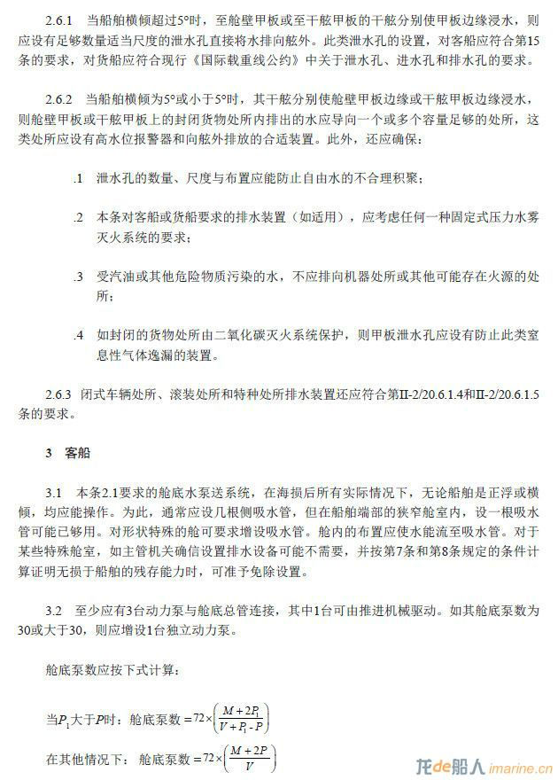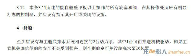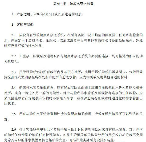 Solas 35-1条:客船与货船应设有有效的舱底水泵送系统,在所有实际工况下均能抽除及排干任何水密舱室的水,但固定用于装载淡水、压载水、燃油或液货并设有其他有效排水设备的处所除外。冷藏舱应设置有效的排水装置。