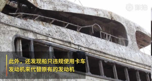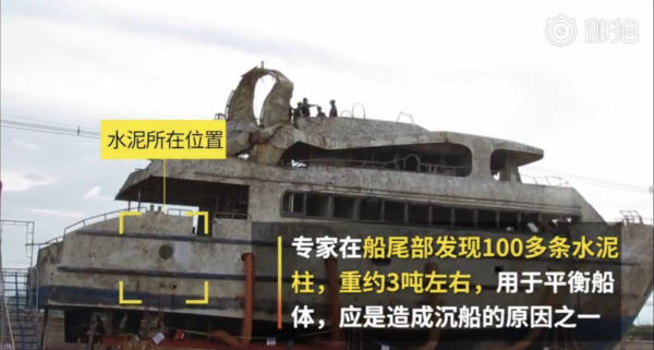 用水泥柱来平衡船体,如果没有很好的固定,在恶劣天气剧烈摇晃下,可能出现水泥柱的移位,或发生连锁反应,导致水泥柱可能会移动到一侧。如水泥柱移到船尾,船舶重心偏向船尾,船尾进水,甚至导致船舶沉没。