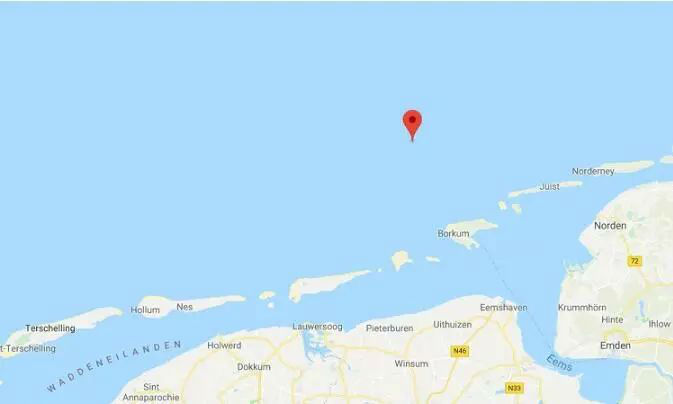 出事地点在德国的博尔库姆岛(Borkum)的北部海域,如图所示。