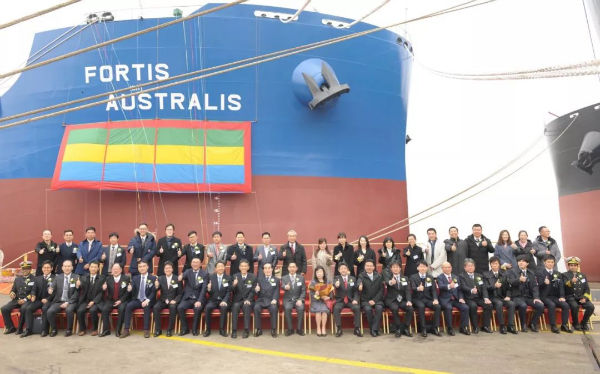 1月28日,上海外高桥造船有限公司为日本三德船舶株式会社建造的18.7万吨散货船系列船舶的第二艘“Fortis Australis”号顺利命名交付。