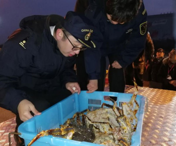 这已是俄罗斯籍帝王蟹捕捞船第三次直接开到横沙国际渔港。2017年6月12日,51吨鲜活蓝/棕俄罗斯帝王蟹“乘坐”TOR号运输船,从遥远的俄罗斯霍尔姆斯克(Kholmsk)港漂洋过海抵达横沙渔港口岸码头。2018年12月26日,俄罗斯籍帝王蟹捕捞船UZON号从俄罗斯勘察加半岛冷海满载而来,经由堪察加半岛海域捕捞区――扎鲁比诺港――上海横沙国际渔港海运航线直航至沪。一个多月后,UZON号又载着满满一船活帝王蟹来上海了。
