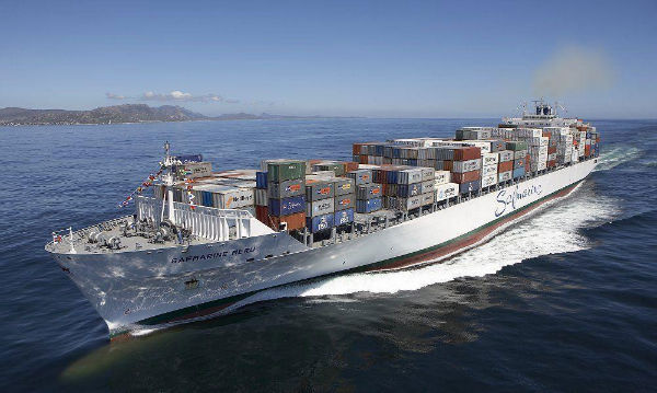 (常见的集装箱船尺寸极大,甲板上的人只是几个小像素点)