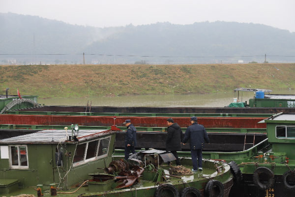 2月19日上午,停泊在浦阳江钱池航段的“浙诸暨货0188号”船员钱小江等打电话求助店口海事所,请求船检部门派人前来现场船检。得知这一情况后,诸暨船检部门立即组织人员前往船舶停泊地点,现场了解受检船舶安全情况和受检船舶数量。