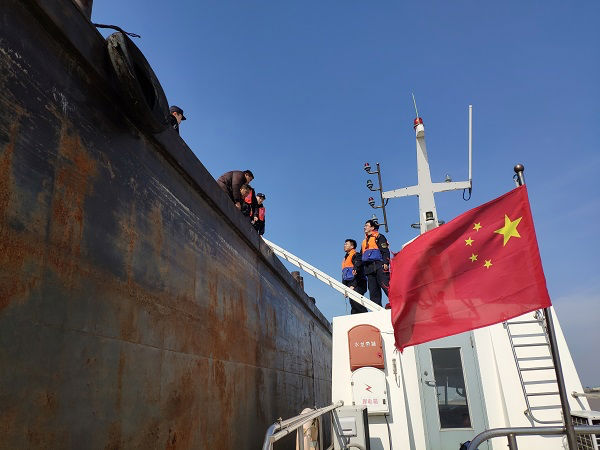 图说:崇明海事局昨查获一艘涉海运输内河船,并完成今年首例跨省移交 崇明海事局供图(下同)