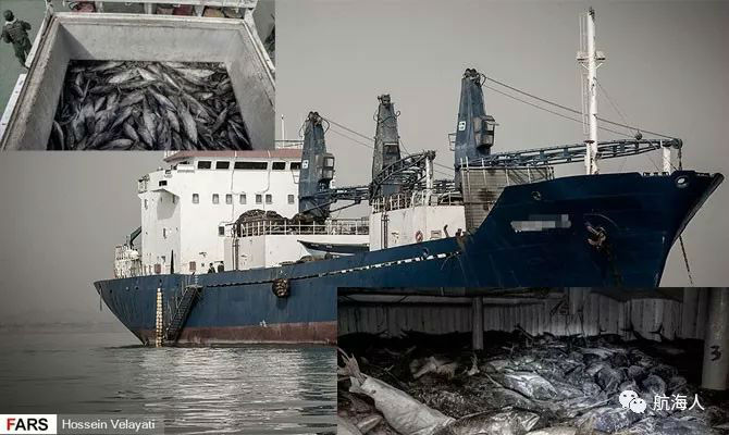 伊朗有关当局称, 该冷藏船上满载来自中国渔船的冷冻鱼获。