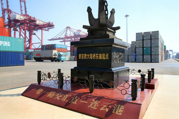 位于连云港港的新亚欧大陆桥东端起点标志。