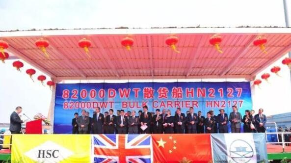 3月25日上午,扬子江船业为英国Hadley船东建造的厂编N2127号82000DWT散货船“COTINGA”轮命名交付。