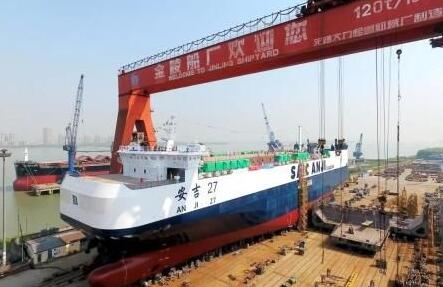 4月8日上午9时38分,南京金陵船厂有限公司为安吉物流股份有限公司建造的首艘2300车位汽车滚装船(AJ2300PCC-1号)顺利下水。上汽安吉物流股份有限公司总经理余德,党委书记傅鼎,副总经理兼上海安盛汽车船务有限公司总经理忻坚敏,党委副书记、纪委书记、工会主席陈茜茜;中国船级江苏分社总经理张凯;上海船舶研究设计院副院长万水生;南京金陵船厂有限公司总经理、党委书记姜福海,党委副书记覃烈,副总经理丁健亮、顾问朱炳勇等领导和嘉宾出席了下水仪式。