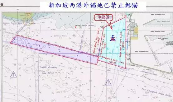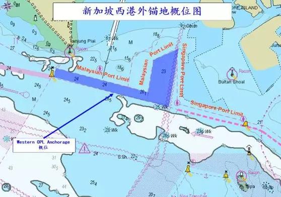 2)新加坡西港界外锚地(Western OPL Anchorage)是新加坡西面靠近马来西亚丹绒柏乐巴斯港(Tanjung Pelepas)由新加坡港界、马来西亚新山(Johor Bahru)港界和TSS边界围成的区域)最初船舶被允许抛锚,马来西亚对该水域也监管不严。