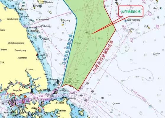 2)船舶因等候指令或备舱需在新加坡海峡东进口的南海水域抛锚,应避免进入马来西亚和印度尼西亚领海水域,并尽量远离主航道和水下电缆等障碍物。