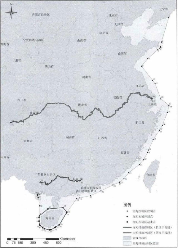 排放控制区范围示意图 图片来自:《船舶大气污染物排放控制区实施方案》