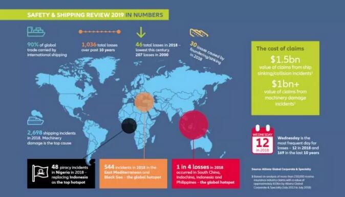 根据Allianz Global Corporate&Specialty SE(AGCS)安全和航运评论的数据,目前航运损失处于本世纪最低水平,同比下降超过50%。