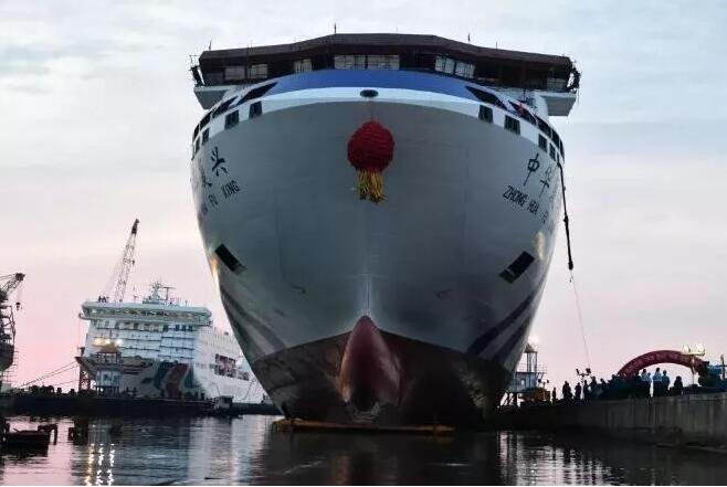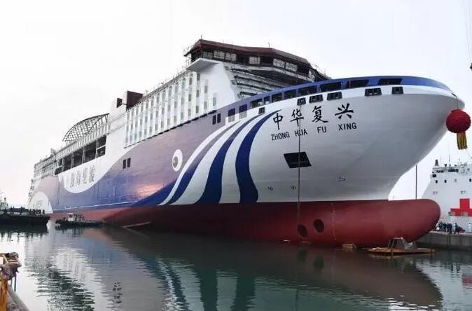 2019年6月8日3时58分,渤海轮渡集团股份有限公司斥资4.2亿元建造的亚洲最大邮轮型豪华客滚船“中华复兴”号在黄海造船有限公司顺利下水。“中华复兴”号下水后,将经历4个多月的内部装修,预计10月份交付使用,正式投入烟台至大连航线营运。