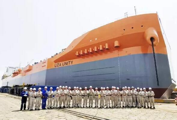 自2018年3月该船开工以来,外高桥造船严格按照工艺规范和生产节点,强化精益管理,实施新工艺、新工法,注重安全、质量和工期的全过程管控。特别是今年5月16日,该船重约1900吨、长30米、宽60米、高39米,相当于13层楼高的上层建筑(生活楼)总段顺利吊装,创下了中国造船企业坞内成功吊装搭载尺寸最大、吨位最重的FPSO上层建筑新纪录。