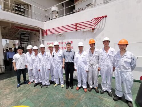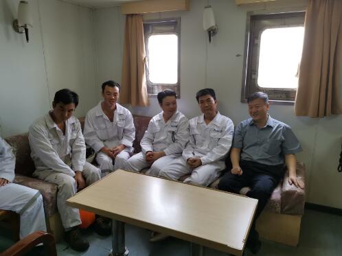 王愚总领事代表中国政府向全体船员致以节日问候,并宣读了中国交通运输部李小鹏部长的亲笔信。随后,王愚总领事与船员们亲切座谈,详细了解船员们在卡拉奇期间的工作、生活情况,叮嘱船员们要保持身心健康、安全航行、体面工作。座谈中,“南远珍珠”号船员纷纷表达了对党和国家殷切关怀的感激之情,并表示将以更高涨的热情投入到航运事业当中,以优异的成绩为祖国70华诞献礼!