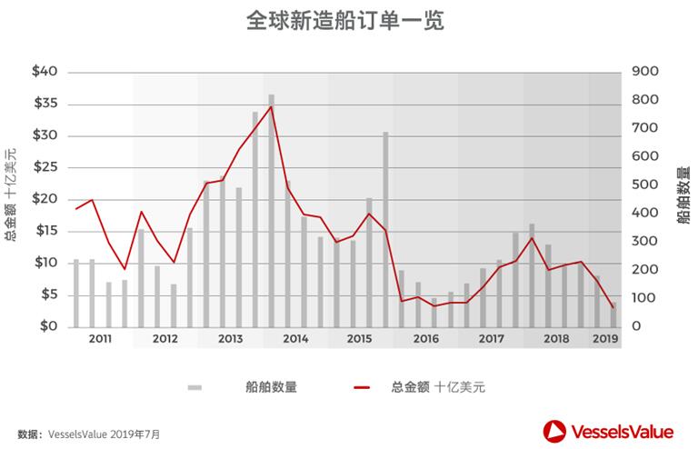 注定不平凡的2019已过半,本期VesselsValue对上半年的全球新造船市场进行盘点,总体来说全球新造船市场普遍下滑。