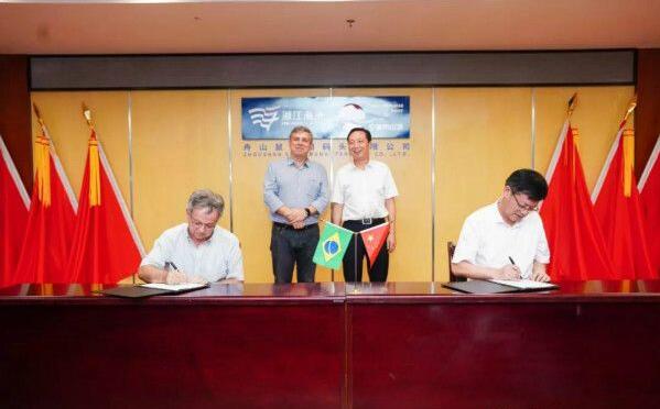 浙江省海港集团、宁波舟山港集团党委书记、董事长,宁波舟山港股份有限公司董事长毛剑宏,淡水河谷首席执行官柏安铎见证签约。根据合作谅解备忘录,淡水河谷与宁波舟山港集团将寻求深化合作、协同增效的机会,向中国客户供应淡水河谷出产的优质的铁矿石产品。双方还将寻求深化在物流和供应链方面的合作机会。