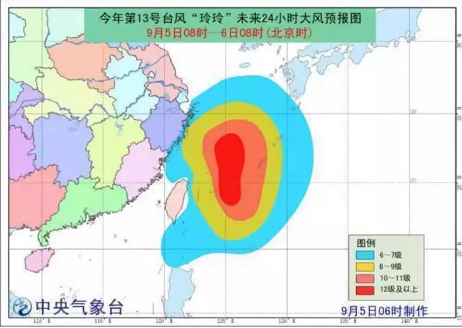 大风预报:5日8时至6日8时,台湾以东洋面、东海中南部、我国钓鱼岛附近海域将有8-11级大风,“玲玲”中心经过的附近海域风力可达12-16级,阵风17级或17级以上;台湾海峡北部、、巴士海峡、东海北部偏北海域、台湾岛沿海、福建东北部沿海、浙江沿海、杭州湾也将有6-7级大风,阵风8-9级。