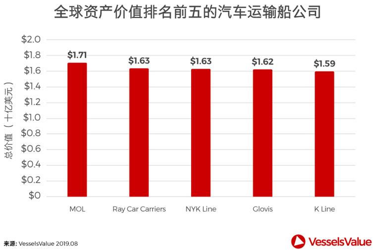 下表显示了目前全球范围内,资产价值排名前五的汽车运输船队。