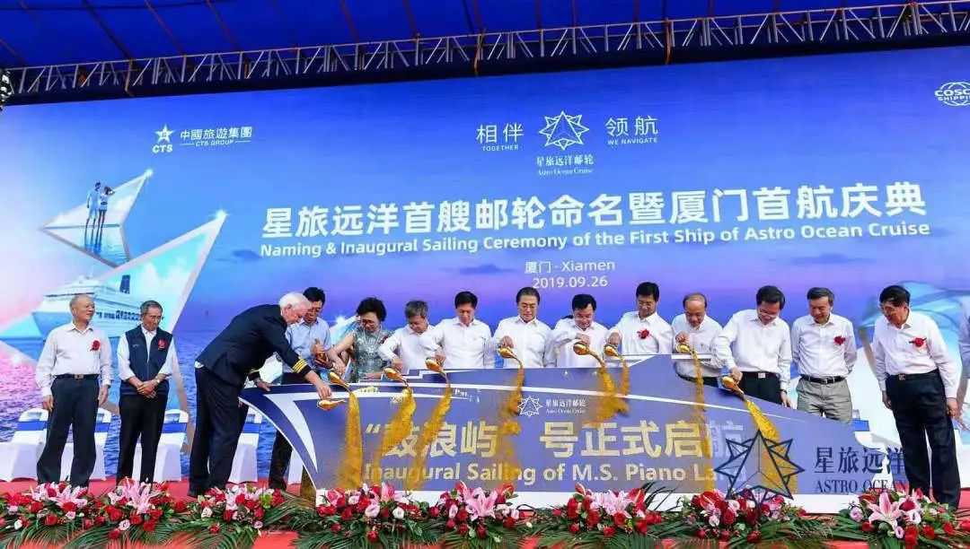 9月26日,由中国旅游集团和中国远洋海运集团共同投资运营的中国民族邮轮品牌“星旅远洋”旗下首艘豪华邮轮“鼓浪屿”号命名暨首航仪式在厦门举行,标志着中国第一艘自主运营的豪华邮轮正式亮相中国市场。