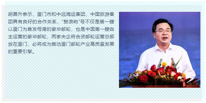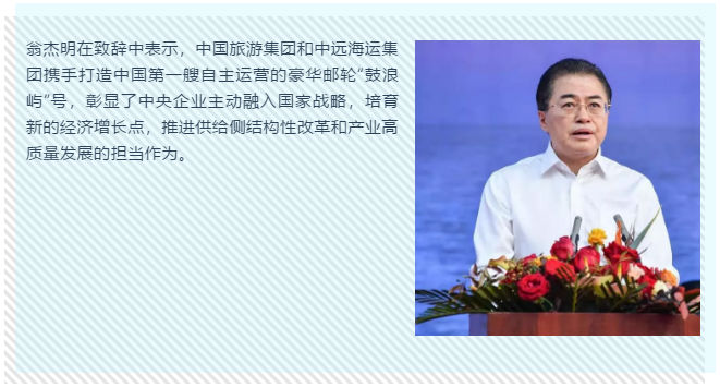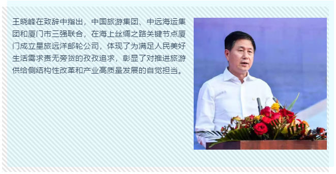 近年来,随着我国经济社会不断发展、居民消费水平逐渐提高,邮轮旅游日益成为我国居民消费新的增长点。中国旅游集团是我国最大的旅游央企、中远海运集团是全球最大的综合性航运企业。厦门是我国沿海重要港口和国家对外开放一类口岸,具有发展邮轮产业得天独厚的优势和优良的营商环境。“两大央企+地方推动”“旅游+航运”的合作模式充分融合了三方核心竞争优势,与我国邮轮产业发展高度契合。