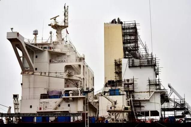 日前在浙江舟山万邦永跃船舶修造有限公司施工现场看到,一艘外籍船舶停靠码头,正在安装脱硫装置。据现场工作人员介绍,多艘船舶正在排队,等着安装脱硫装置。