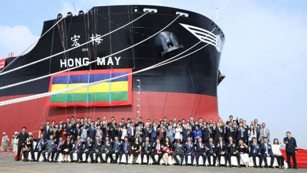10月23日,由中国船舶工业集团有限公司所属上海外高桥造船有限公司为美国福茂集团建造的18万吨好望角型散货船“宏梅”号在上海命名交付。中船集团副总经理孙伟,福茂集团荣誉董事长赵锡成、董事长兼首席执行官赵安吉,利比里亚驻华大使托马斯出席命名仪式。