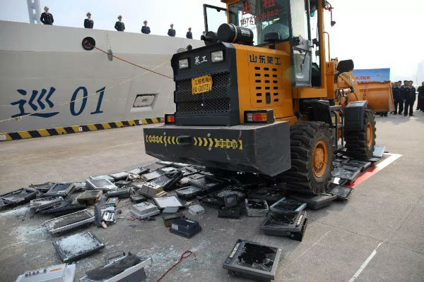 昨天(28日),上海海事局在上海国客中心码头对涉海运输内河船违法使用的套牌AIS(船舶自动识别)设备进行集中销毁,今年以来海事部门内河船涉海运输整治专项行动查处收缴的115台AIS设备被碾压报废。记者获悉,专项行动加大了对内河船涉海运输行为的震摄作用,维护上海港水域良好的通航秩序,保障第二届中国国际进口博览会顺利召开。