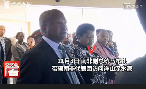 11月3日,南非副总统马布扎访华的最后一天,来到上海洋山深水港参观。