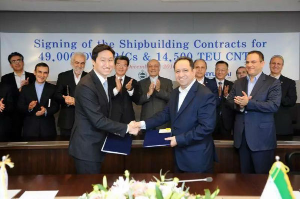 伊朗制裁解除之后,韩国造船业迫切希望从伊朗解禁获益。因为伊朗大量VLCC逐渐老旧,新船订单将不断涌现。其中,伊朗国航(IRISL)此前宣布,订造总计60万TEU的集装箱船;NITC也表示,将投资25亿美元订造新船。业内专家指出,到2022年为止,IRISL和NITC预计将投资80亿至125亿美元订船。对此,韩国迫切希望吞下这块“大蛋糕”,为陷入困境的韩国造船业提供生路。最终,通过韩国政府的运作,现代尾浦造船签署16艘新船订单,总价值共计12亿美元;大宇造船海洋获得总价值11.4亿美元的自升式钻井平台订单。