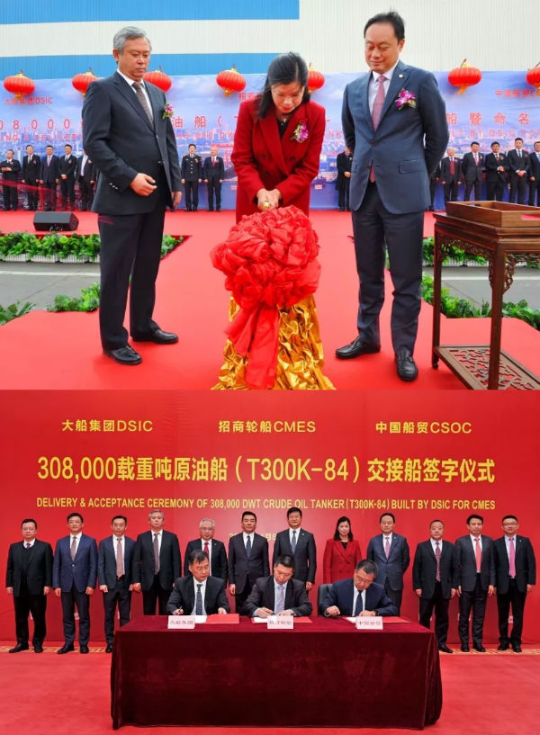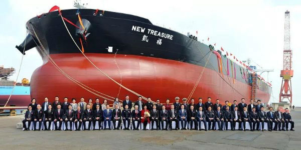 2019年11月8日,招商轮船订造的30万吨VLCC“凯福”轮(New Treasure)在大连大船集团顺利交付。招商局集团副总经理邓仁杰为新船命名,招商轮船董事长谢春林,中船集团副总经理孙伟,大船集团董事长刘征、总经理杨志忠,招商轮船副总经理刘威武、高级顾问张保良等出席仪式。